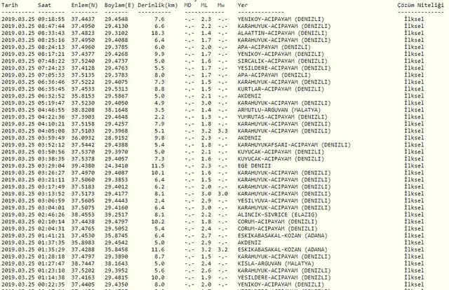 Kandilli Rasathanesi Son Depremler Listesi Denizli Acipayam Son Dakika Deprem Mi Oldu